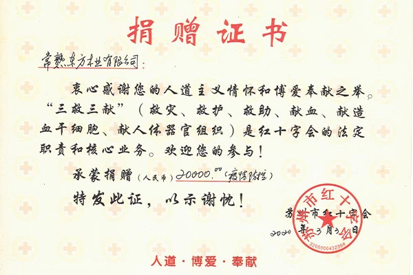 疫情防控人人有責(zé)我司向蘇州紅十字會捐款兩萬元